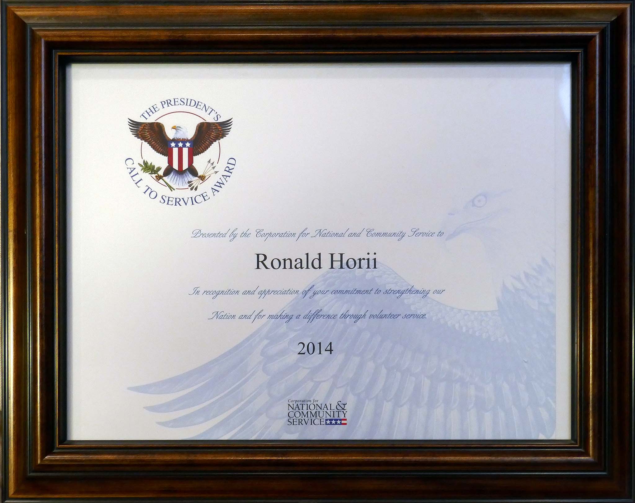 Ron Horii volunteer recognition, 4/23/22