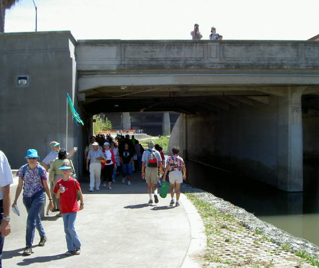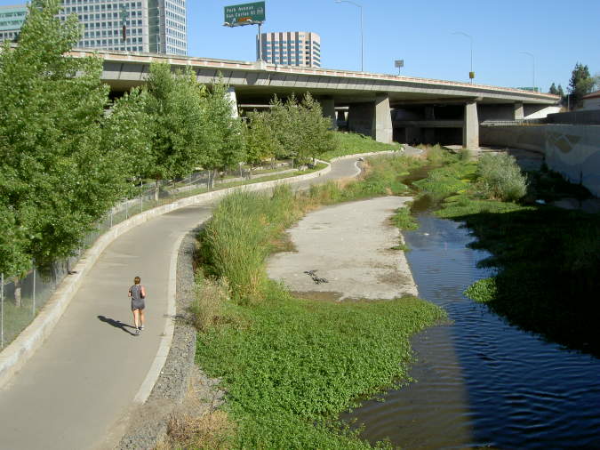 lead down to the trail on the east bank of the river. Ahead are I-880