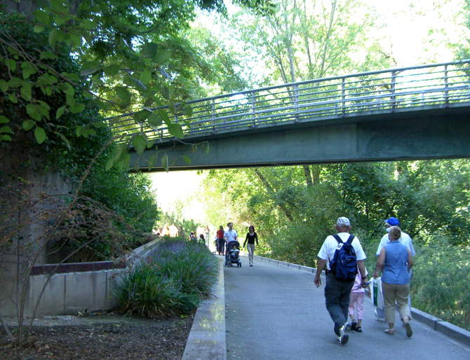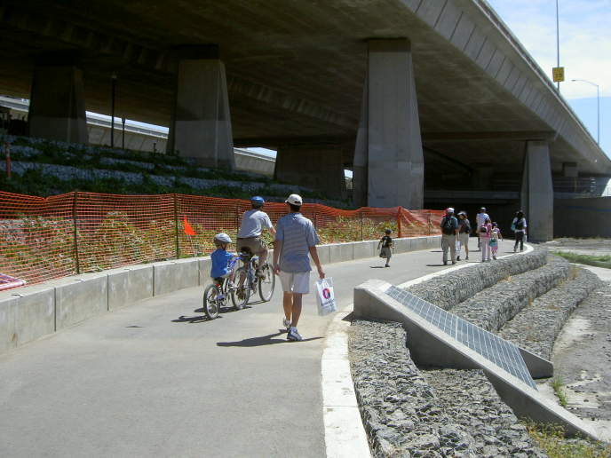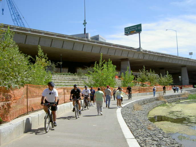 the Children's Discovery Museum, the trail drops down to river level