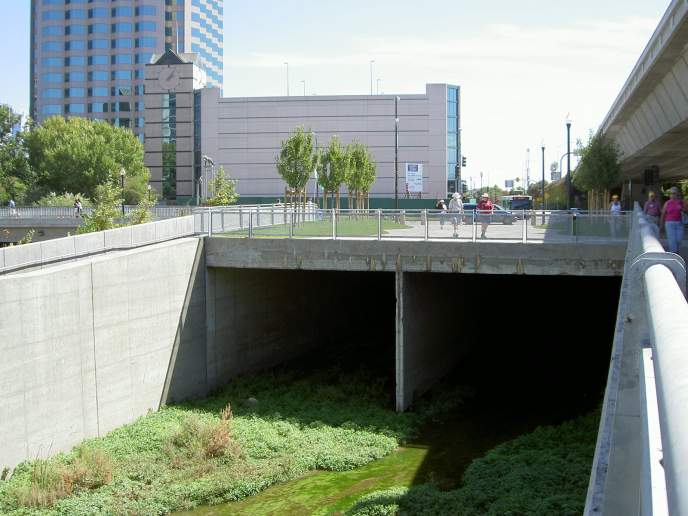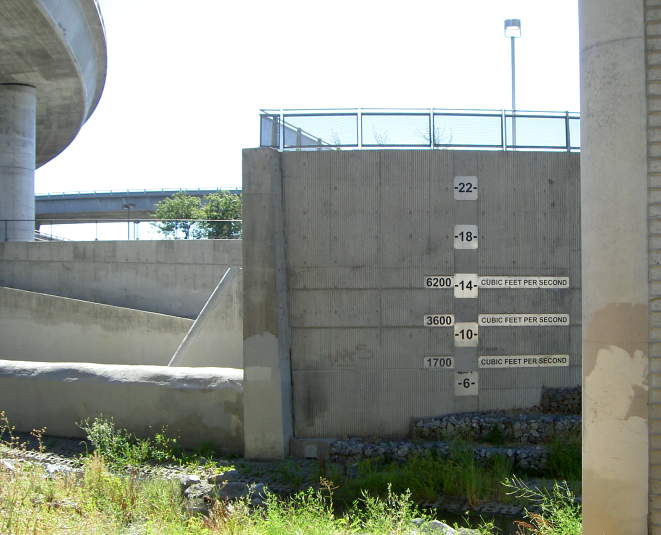 the East bank trail, the huge flood control inlet culvert can be seen.