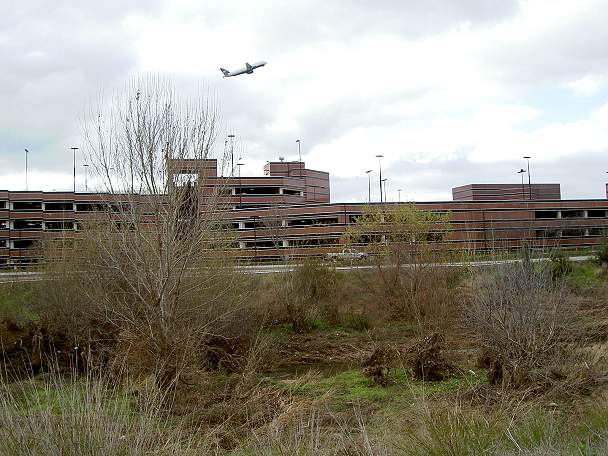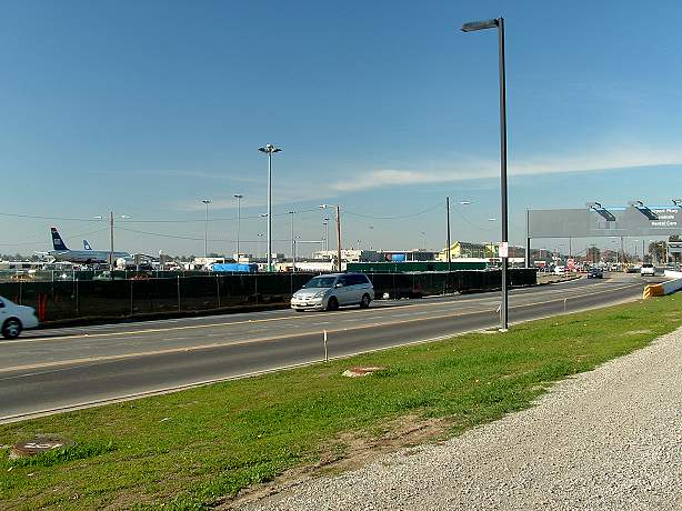 The trail passes by the airport terminals. Above is the new Terminal B, under construction. The