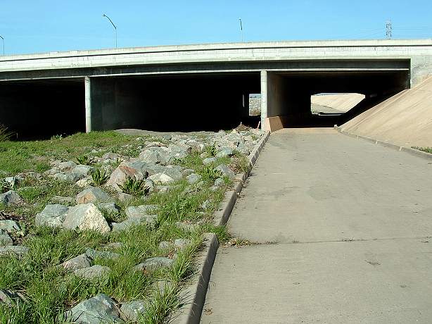 awhile, the trail reaches the Skyport Drive undercrossing. There are no