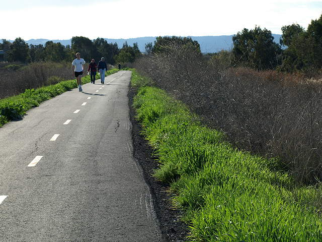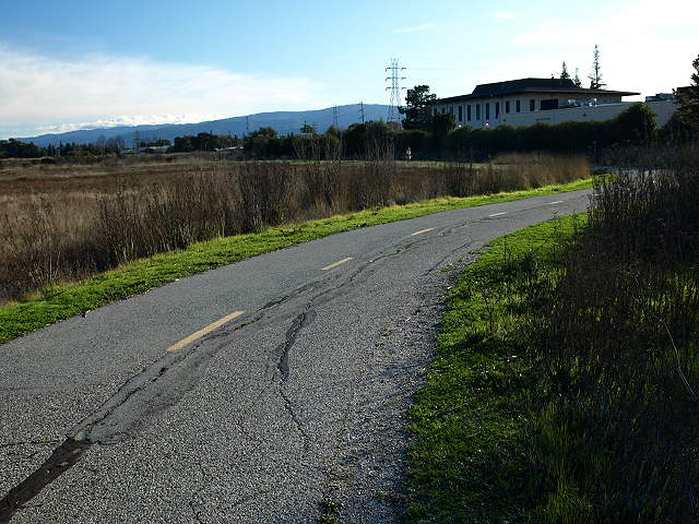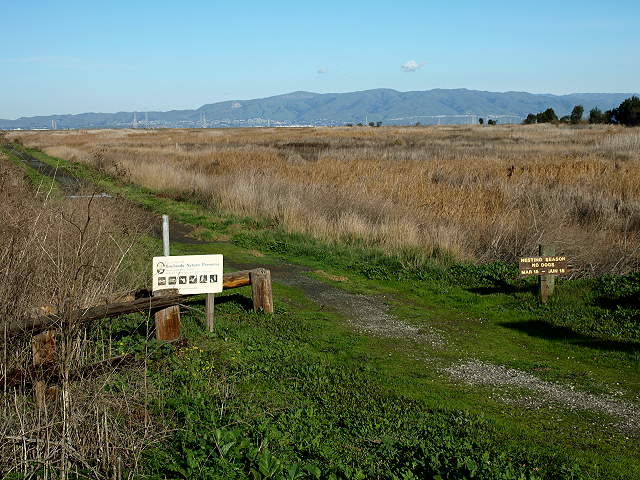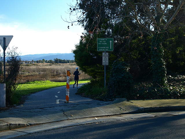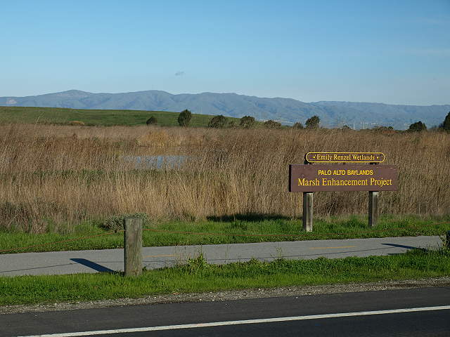 Trail entry at Faber Place, along the edge of the Renzel Wetlands, 2/7/09 Trail along the marsh from Faber Place to East Bayshore Road, 2/7/09 At East Bayshore Road, the trail