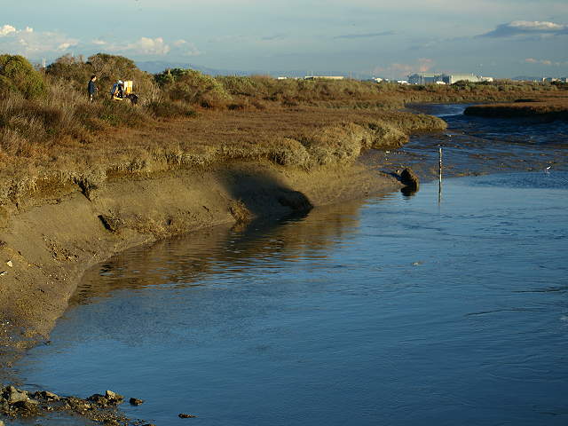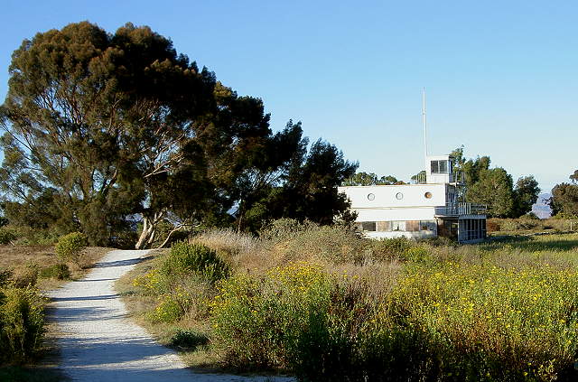The pier and dock at the Sailing Station, 6/10/07 The trail ends here. Backtrack to the Nature Center. Birdwatchers by the tidal lagoon across from the Nature Center, 5/27/07 Start of the San Francisquito Creek Trail leading to the Lucy Evans Baylands Nature Interpretive Center, 6/10/07 The Harriet Mundy Marsh east of the Nature Center. The pickleweed marsh is a home for the endangered clapper rail and salt marsh harvest mouse. 2/7/09 Boardwalk from the Nature Center to the Bay, 6/10/07 The boardwalk near the Bay in the late fall, when the pickleweed is red and brown, 11/23/02 The boardwalk near the bay in the summer, when the pickleweed is green, 6/10/07 The shoreline on San Francisco Bay beyond the boardwalk, 6/10/07 Looking back along the boardwalk towards the Nature Center, 6/10/07 Binoculars and interpretive signs at the Nature Center, near the boardwalk entrance, 5/18/03 Swallows' nests in the eaves of the Nature Center, 6/10/07 The Nature Center and boardwalk perched on piers over the Harriet Mundy Marsh, 5/13/03 Birds in the Harriet Mundy Marsh west of the Nature Center, 6/10/07 An airship floats over the Bay, past the end of the boardwalk, 2/7/09 The Harriet Mundy Marsh and the Dumbarton Bridge, 6/10/07 A great egret feeding in the marsh, 2/7/09 The Harriet Mundy Marsh and the Dumbarton Bridge and train crossing, 6/10/07 The trail along the lagoon and the Nature Center, 2/7/09 The trail turns and runs between the airport and a channel carrying the outfall from the water treatment plant, 2/7/09 Birds on the bank of the outfall channel, 2/7/09 Outfall channel to the Bay at low tide, 2/7/09 Looking back at the trail between the marsh and the airport, 2/7/09 Mouth of San Francisquito Creek at high tide, 6/10/07 Mouth of San Francisquito Creek at low tide, 2/7/09 San Francisquito Creek across from the Ravenswood Open Space Preserve, 6/10/07 The Palo Alto Airport runway from the San Francisquito Creek Trail, 6/10/07 San Francisquito Creek from the trail bridge to Ravenswood, 6/10/07 The Palo Alto Municipal Golf Course from the San Francisquito Creek Trail, 6/10/07 Paved San Francisquito Creek Trail between San Francisquito Creek and the golf course, 2/7/09 For more on this section of trail,